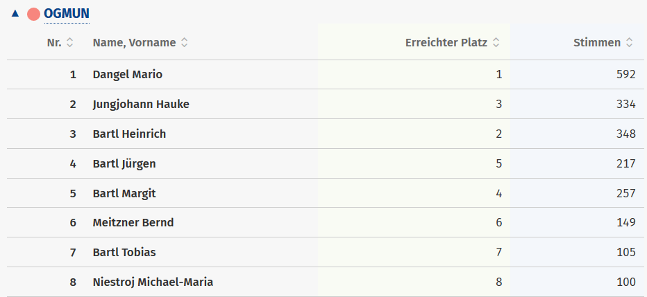 Hier das Wahlergebnis für die Ortsgemeinschaft Mundraching