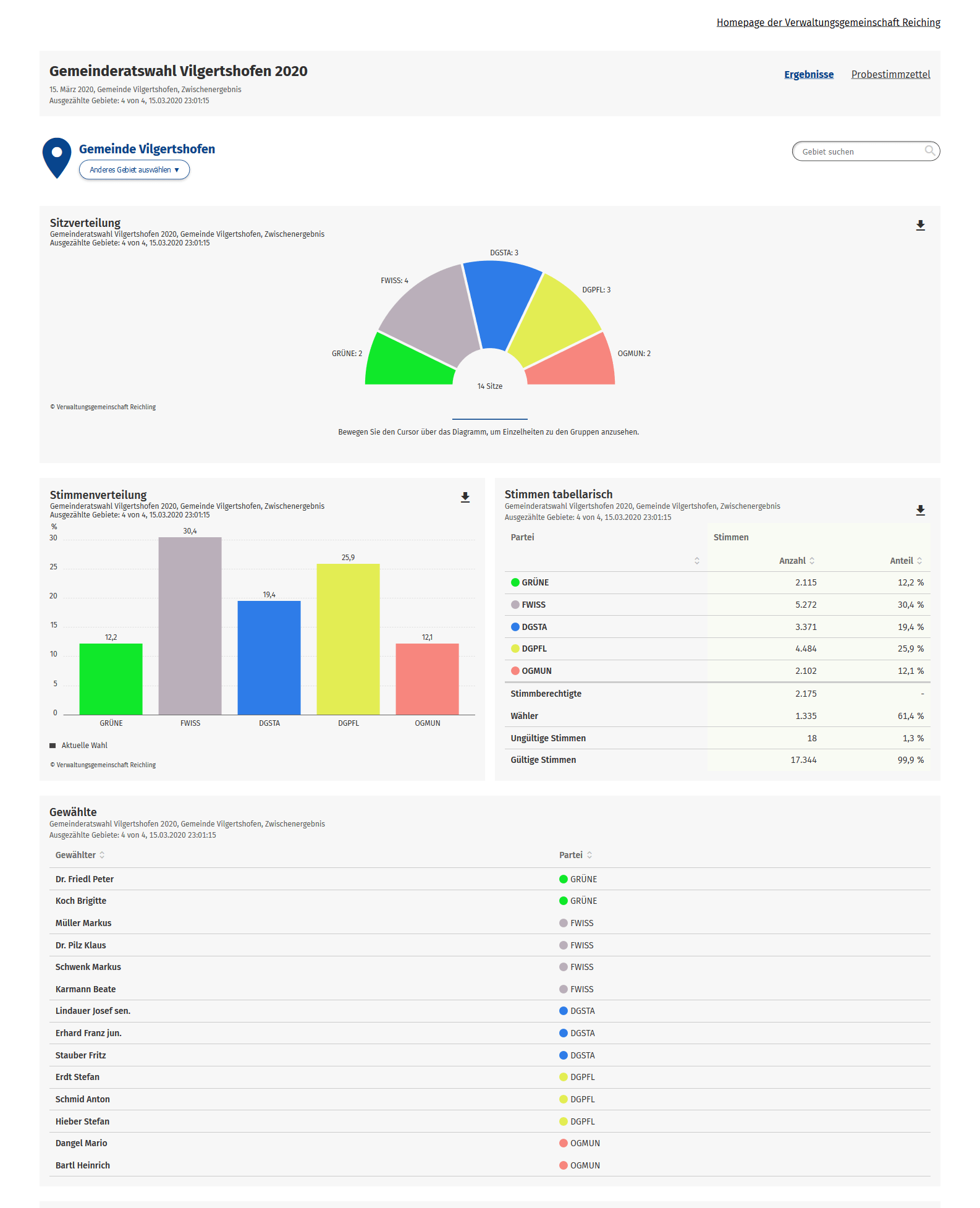Wahlergebnisse zur Bürgermeister- und Gemeinderatswahl der Gemeinde Vilgertshofen